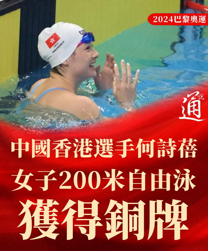 香港中通社7月30日電 巴黎時間29日,香港游泳運動員何詩蓓和擊劍運動員張家朗分別於女子200米自由泳賽事、及男子個人花劍賽事,為香港贏得銅牌和金牌。行政長官李家超對二人致以衷心祝賀。