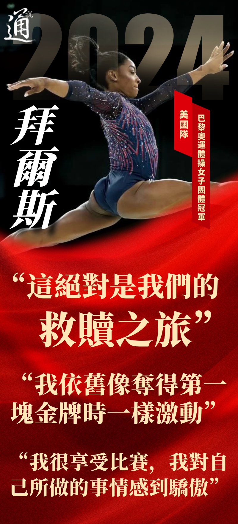 (香港新聞網製圖) 當日的巴黎賽場,被寄予厚望的還有美國選手拜爾斯。在體操女子團體決賽中,她率領美國隊以171.296分、領先第二名5.802分的碾壓式優勢奪冠。 八年前,拜爾斯率領美國體操女隊奪得里約奧運會團體冠軍。但三年前,她因心理原因缺席東京奧運會體操女子團體決賽,缺少主將的美國隊僅獲得銀牌。因此,拜爾斯視巴黎奧運為“救贖之旅”。 “上次奪冠的時候,我們還很年輕,隨著年齡增長,我也經歷了更多。”27歲的拜爾斯在賽後表示,“今天奪冠跟八年前感覺有些不一樣,我很享受比賽,我對自己所做的事情感到驕傲。我依舊像奪得第一塊金牌時一樣激動。”