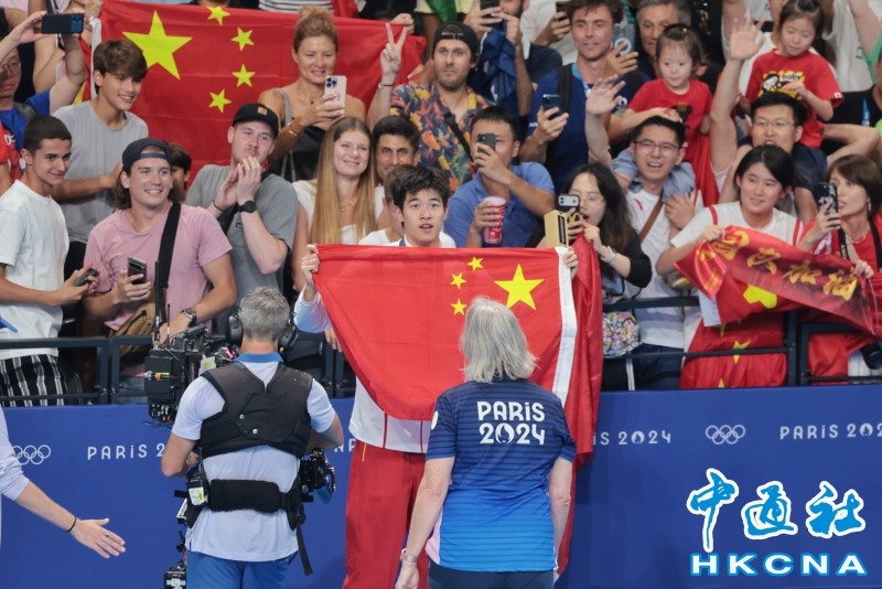 當地時間7月31日,在巴黎奧運會男子100米自由泳決賽中,中國選手潘展樂奪得金牌,并打破世界紀錄。(香港中通社記者 謝光磊 攝) 香港中通社圖片 31日,在游泳項目男子100米自由泳決賽中,中國選手潘展樂以46秒40的成績強勢奪金,並打破由自己保持的世界紀錄。 “我現在的感覺就是爽!真好!”奪金後的他如釋重負。 此次在巴黎,中國游泳隊經歷頗為艱難的時刻,過去整整四個比賽日,原本頗具實力的中國選手多次與金牌失之交臂,2銀2銅的戰績未能達到預期。用一枚金牌為中國泳軍掃卻陰霾的潘展樂坦言,憋著一口氣,“我要用速度去證明。” 當日站上奧運會的最高領獎台,潘展樂全程認真跟唱國歌。他說,“這一切都太奇妙了。我相信,不管對我還是中國游泳隊,這一切只是開始。” 當被問及頻繁的興奮劑檢查是否對備戰狀態造成影響時,這位“00後”選手自信且淡然,“測試在規定時間和規則以內,所以我不覺得有什麼,沒什麼大不了。”
