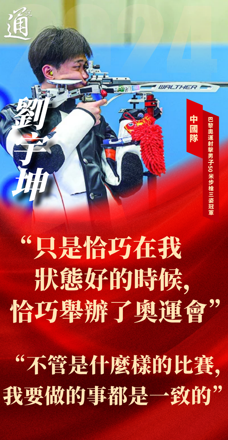 (香港新聞網製圖) 屢創佳績的中國射擊隊則摘下本屆奧運第4金。在1日進行的射擊男子50米步槍三種姿勢決賽中,中國選手劉宇坤穩扎穩打,以463.6環的成績戰勝各路好手,奪得冠軍。 27歲,第一次參加奧運會就奪冠,這是多麼令人激動的事,但無論賽前訓練,還是賽後採訪,劉宇坤總是表現淡然。 被問對第一次拿奧運冠軍的看法,他説:“只是恰巧在我狀態好的時候,恰巧舉辦了奧運會”;被問“獲得了金牌,會改變你的生活嗎?”他簡潔回答:“我覺得不會。”