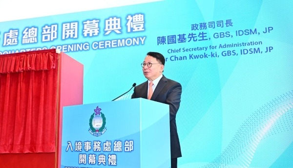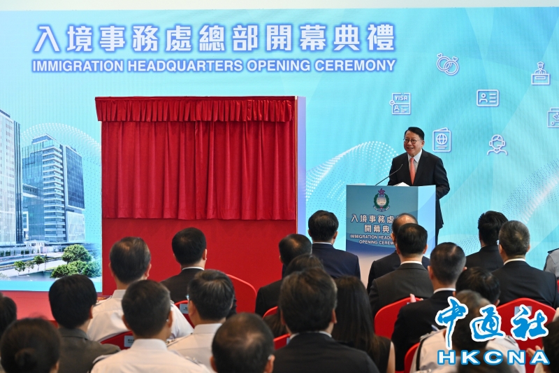 8月3日,香港特區政務司司長陳國基主持入境事務處總部開幕典禮並致辭。香港中通社圖片 陳國基指,隨著香港特區成功構建更穩固的維護國家安全法律制度和執行機制,入境處作為守護國家南大門的重要部門,要繼續堅定不移、切實履行香港出入境管理的天職,全面做好情報分析和執法工作,為國家、為香港的安定繁榮保駕護航。 由前年12月底至今年7月底,各項人才入境計劃共收到超過34萬份申請,批出超過21萬份,數字遠超原定每年吸納至少35000名人才的目標。入境處作為多項人才入境計劃的執行部門,陳國基希望能繼續精益求精、高效審批,為香港引入更多優秀人才。