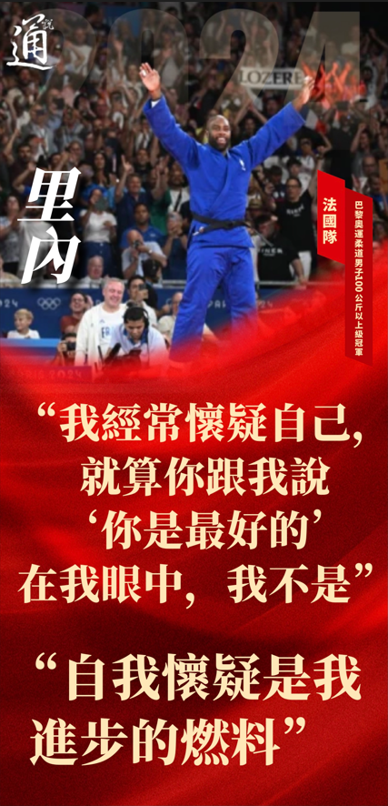 為何如此成功?里內說:“我經常懷疑自己,就算你跟我說:‘我是最好的’,在我眼中,我不是,自我懷疑是我進步的燃料。” 帶著對自我的懷疑不斷精進柔道技法,35歲的里内仍能在奧運大放光彩。“這(奪金)是一種巨大的自豪感,”里内賽後表示,“因為在主場出戰,所以更加特別。我在職業生涯曾經多次想過,在重要的決賽以‘一本’取勝,今天我在家門口做到了。” (完) 【編輯:李濼】