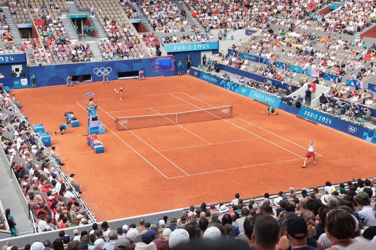 在巴黎奧運會網球女子單打決賽中,鄭欽文(中)奪得金牌,實現了中國選手在該項目上的歷史性突破