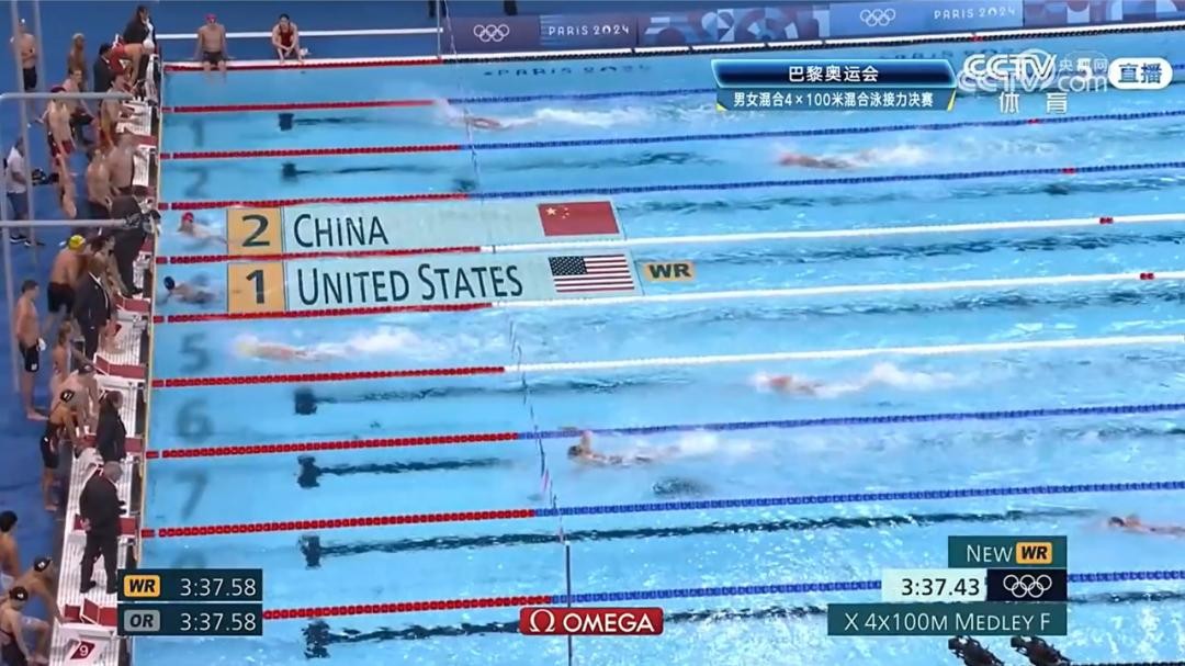 香港新聞網8月4日電 當地時間3日晚,巴黎奧運會男女4×100米混合泳接力決賽中,由徐嘉余、覃海洋、張雨霏和楊浚瑄組成的中國隊,游出3分37秒55,以打破亞洲紀錄成績奪得亞軍。美國隊3分37秒43打破世界紀錄,以微弱優勢奪冠,澳大利亞隊獲得銅牌。