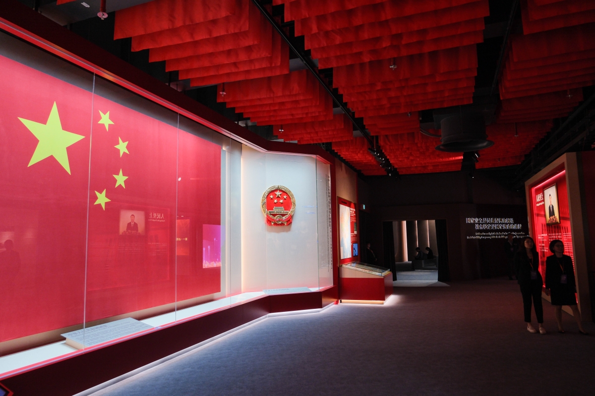 香港中通社圖片 展覽廳展示的這面特大國旗特色如下: 1.國旗是由北京巿人民政府贈送給香港特區,是於《中華人民共 和國香港特別行政區維護國家安全法》(《香港國安法》)公布 實施當天,即 2020 年 6 月 30 日在天安門廣場升起,編號 2020-0057 號的國旗。 2.旗長 5 米,寬 3.3 米,手工絲網印染,整幅機織無拼接。 3.近距離觀看此面獨特的國旗,能夠讓熱愛祖國、熱愛香港的巿民感受到五星紅旗的莊嚴和神聖,以及它內在所蘊含的 凝聚力和深厚情感。 二、“開國大典”油畫 展覽廳展出的“開國大典”油畫是由中國國家博物館送贈,面積4 米乘 2.3 米,是首次有同樣大小的官方提供複製本在內地以外 地方展出。展品描繪了新中國成立的重要一刻: 1.1949 年 10 月 1 日,中央人民政府毛澤東主席在天安門城樓莊 嚴宣布:“中華人民共和國中央人民政府於今天成立了!”在 國歌聲中,毛主席親自按動電鈕,升起了第一面五星紅旗,54 門禮炮齊鳴各 28 響。毛主席隨後宣讀中央人民政府第一號公 告,向全世界宣告中華人民共和國成立。從此,中國人民掌握 了國家的權力,成為國家的主人。 2.1952 年,中央美術學院教授、青年畫家董希文根據中華人民 共和國成立的歷史,創作了《開國大典》油畫,描繪中華人民 共和國中央人民政府成立時天安門國慶典禮的盛況,場面恢 宏,喜慶熱烈,中央人民政府主席和其他中央領導神采奕奕。 藍天白雲,風和日麗,廣場開闊,紅旗如海,天安門城樓金碧 輝煌。工人、農民、學生、市民高舉紅旗,縱情歡呼新中國的 誕生。 三、月球土壤 展覽廳展出的月球土壤展品名為“明月照我還”,由我國在38萬公里外的月球採集,是國之瑰寶。展品的中心是重49毫克的珍貴月球土壤,配置一個對拼球放大鏡和梯形底座,由國家航天局借出。展品的陳列設計有以下特色: