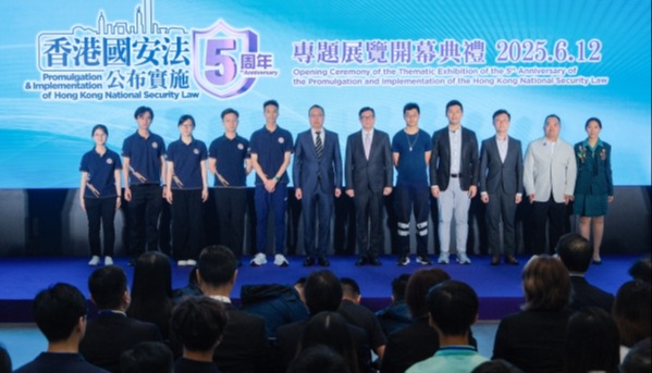 8月6日,香港特別行政區國家安全展覽廳開幕典禮在香港歷史博物館舉行。(香港中通社圖片) 香港特區行政長官李家超致辭表示,維護國家安全只有進行時,沒有完成時。特區政府會全面準確貫徹“一國兩制”方針,堅定不移維護國家主權、安全、發展利益。 中央政府駐港聯絡辦主任鄭雁雄致辭指出,歷經了由亂到治,今天的香港特區正在由治及興的光明大道上勇毅前行。越是這個時候,越不能淡忘國家安全。國安展覽廳的落成開放,必將進一步匯聚“國安家好”的共識。 中央政府駐香港特區維護國家安全公署署長董經緯致辭時表示,展覽廳作為常態化教育基地,具有標誌性的里程碑教育意義。維護國家安全有“一國”之責,但無“兩制”之分,應人人有責、人人盡責,國家安全要由香港人民共同完成。 外交部駐港特派員公署特派員崔建春致辭指出,外交部駐港公署將繼續以維護國家主權、安全、發展利益為使命,旗幟鮮明反干預,堅定不移護國安,全力支持香港發揮獨特地位和優勢,助力香港在融入國家大局中,實現更好更快發展。 當日記者進入展覽廳後,感到氣氛莊嚴且富有歷史感,有多項珍貴歷史文物和科學標本展出,包括嫦娥五號採集的月壤、香港國安法公佈實施當日在北京天安門廣場飄揚的國旗、中國人民銀行首次發行的人民幣1000元及500元鈔票樣本,以及雪龍2號、殲20戰鬥機、中國空間站、長征系列運載火箭等的模型。 展廳內設有互動屏幕和信息板,提供豐富的歷史背景和解釋性資訊,以及國安主題的兒童動畫。其中“祖國與香港”展區以紅色調和深色天花板為基底,營造出莊重肅穆的氛圍。按1:1比例複製的“開國大典”油畫極具震撼力,使觀眾能深切感受到歷史的厚重感。離開展廳時,訪客將見到“國安港安 國安家安”醒目的巨型標語,深刻領悟“國家安全、人人有責”的道理。 展覽廳將在8月7日正式對公眾免費開放。保安局局長鄧炳強預計一年會接待超過10萬人次的市民和遊客。(完) 【編輯:李冉】