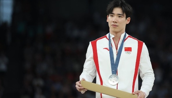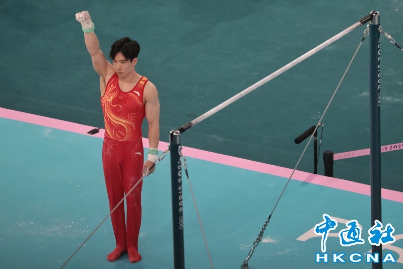 8月5日,在巴黎奧運會體操男子單槓決賽中,中國選手張博恆奪得銅牌。(香港中通社圖片) 8月5日,在巴黎奧運會體操男子單槓決賽中,中國選手張博恆總分13.966分,與中華台北選手唐嘉鴻並列第三,收穫一枚銅牌。日本選手岡慎之助、哥倫比亞選手安赫爾·巴拉哈斯分別斬獲金、銀牌。 根據視頻畫面顯示,賽後頒獎禮上,張博恆不斷側身和唐嘉鴻聊天,一度講到忘我,唐嘉鴻則回頭提醒一起登台領獎。兩人在頒獎台上,亦有不少互動和交流,大合照環節,張博恆還在唐嘉鴻胸前豎起大拇指比讚。