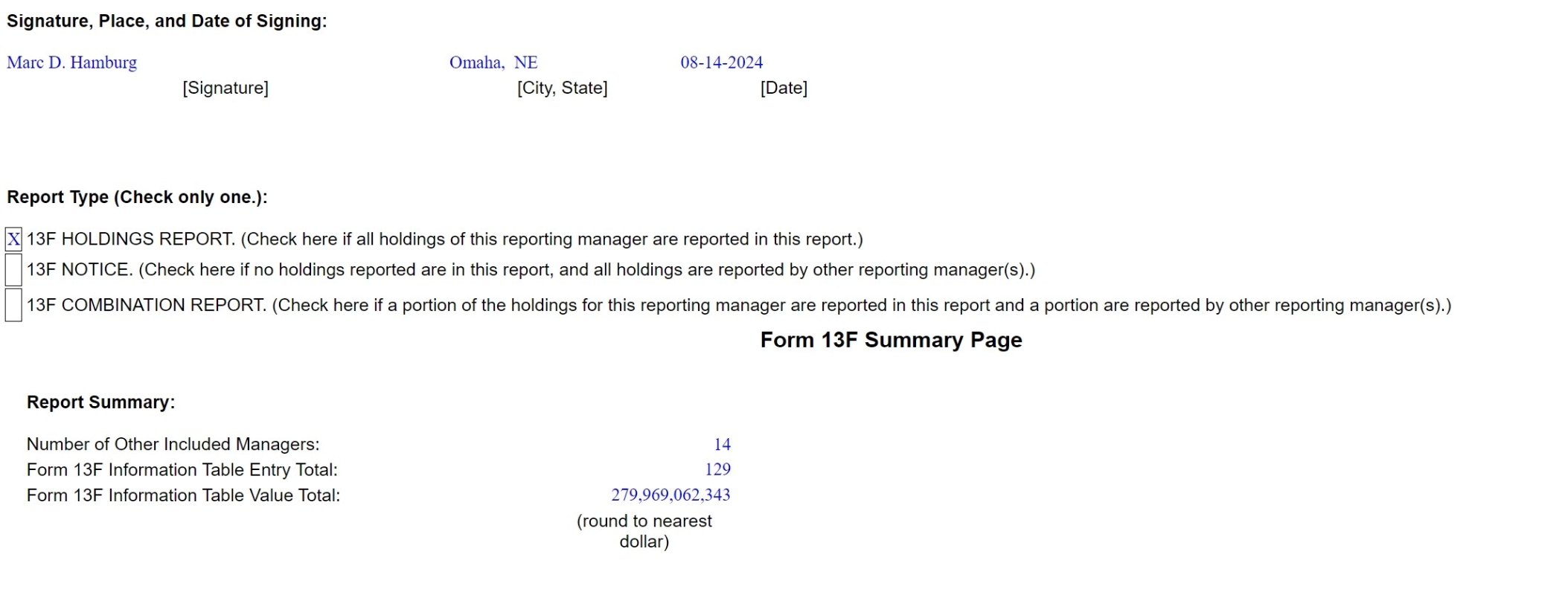 (伯克希爾二季報,來源:公司官網) 巴菲特在5月的伯克希爾年會上曾暗示,減持蘋果是出於稅收原因。他指出,如果美國政府希望彌補不斷攀升的財政赤字,提高資本利得稅,那麼今年“少量出售蘋果”將使伯克希爾股東長期受益。 自那以後,市場一直在等待這份13F表,看看巴菲特到底做出了哪些操作。 周四公佈的文件顯示,截至二季度末,伯克希爾的美股持倉價值為2799.69億美元,較一季度末(3320億美元)下降521億美元。