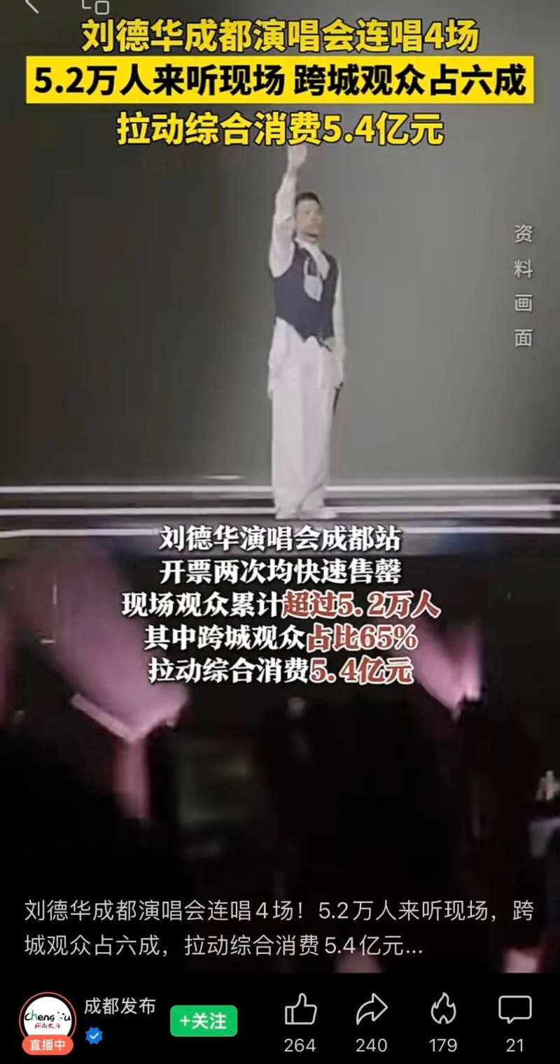 香港新聞網8月16日電 作為橫跨多個年齡段的天王級香港巨星,劉德華的號召力依然是頂流。日前劉德華“今天IS THE DAY巡迴演唱會”在成都開唱,拉動綜合消費5.4億元。
