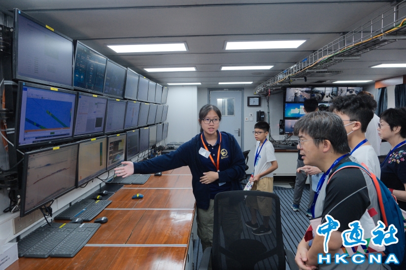 8月18日,香港市民參觀廈門大學海洋科考船“嘉庚”號。“嘉庚”號是中國第一艘採用國外方案設計、國內轉化詳細設計,並由船東擁有完全知識產權的海洋科學綜合考察船。“嘉庚”號船長77.7米,型寬16.24米,設計吃水5.3米,總噸3611,經濟航速11節,最大航速14節,續航力10000海里,自持力50天。“嘉庚”號於8月16日停泊香港,於8月17日至8月19日期間開放予公眾登船參觀,是第一艘在香港舉辦開放日活動的中國內地高校科考船。(香港中通社記者 許其皓攝) 香港中通社圖片
