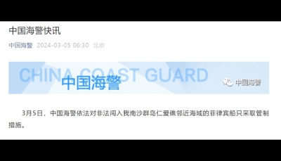 菲海警船先後非法衝闖仙賓礁、仁愛礁 中國海警:立即停止分享到: