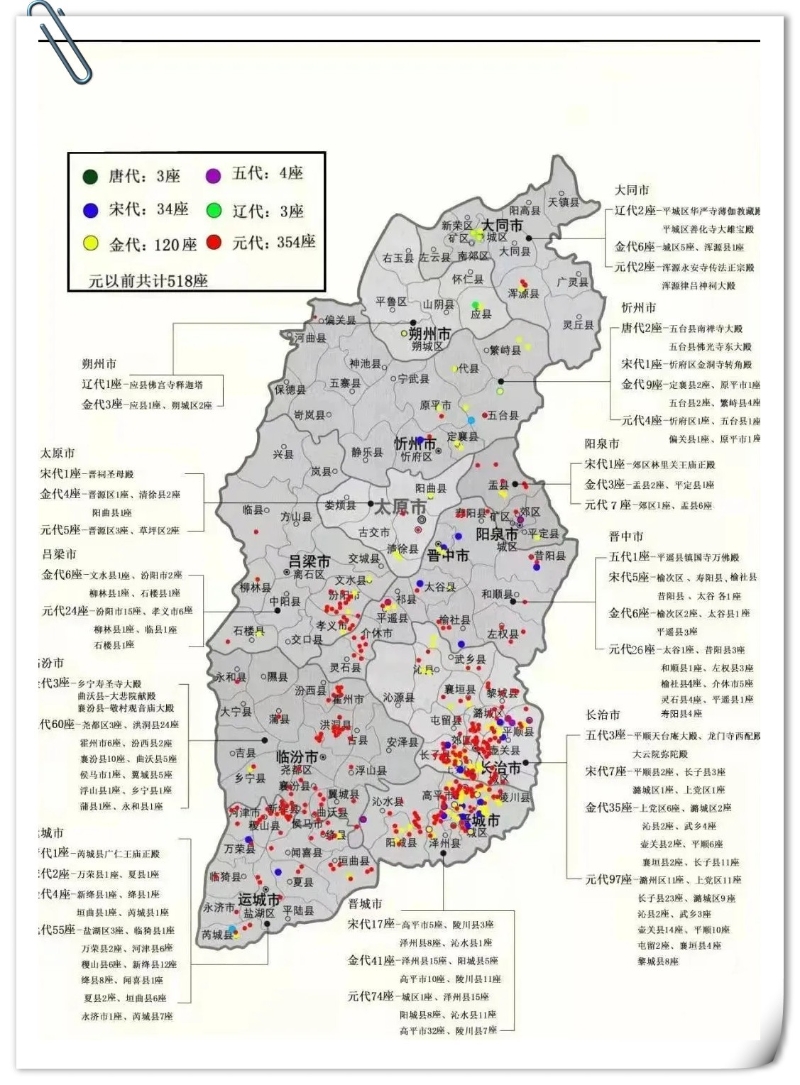 中國山西省境內的古建築分布情況。山西博物館圖 數據顯示,截至2023年,中國山西省共有古建築28027處,其中元代以前的木結構古建築遺存495座,占全中國總數的85%,中國唐代僅存的4座古建築全部在山西省;至於中國明、清時期的古建築更是數量龐大。 下面,就跟著小編一起打卡游戲里那些令人震撼的中國山西古建吧! 【玉皇廟】 《黑神話:悟空》游戲開場,即展現了一批高大巍峨的雕像。它們,就來自府城玉皇廟的二十八星宿彩塑。