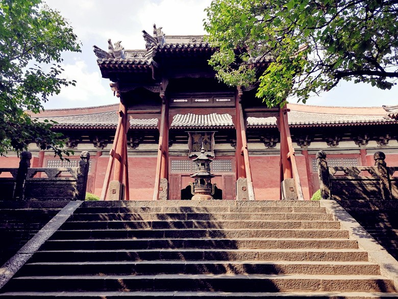 山西省文旅廳發佈的善化寺取景地。圖自山西文旅 在善化寺的中軸線上,坐落著三座重量級的古建,皆是廡殿頂。山門及其後的三聖殿都是金代建築,而最後的大雄寶殿,則和應縣木塔,同為國內八大遼構之一。
