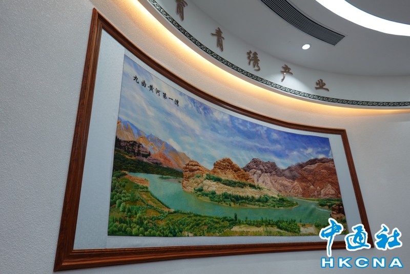 (香港中通社記者 陳卓儀攝) 青繡是青海省近年來全力打造的青海刺繡類非遺品牌,由土族盤繡、藏繡、皮繡、撒拉族刺繡、回族刺繡、河湟刺繡等組成。 近日,香港中通社記者跟隨海外華文媒體青海採訪團,來到位於青海海東市河湟新區的青繡數字化總部。 “2024年1月至7月銷售額4494萬元(人民幣)”,踏入總部大樓,映入眼簾的便是實時統計數據。 青繡與中國其他地區的刺繡最大的不同,也許在於其融合性。青海少數民族佔全省人口將近一半,其中土族和撒拉族是青藏高原獨有的兩個民族。