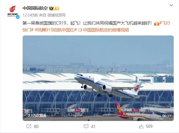 微博截圖 據澎湃新聞報道,C919大型客機是中國首次按照國際通行適航標準自研製、具有自主知識產權的噴氣式幹線客機,採用單通道窄體布局,座級158至168座,航程4075至5555公里。目前,C919訂單數已經超千架。 據介紹,國航C919首架機為延程型,採用158座兩艙布局,包含8個公務艙和150個經濟艙。南航C919首架機為標準航程型,採用164座三艙布局,包含8個公務艙、18個明珠經濟艙和138個經濟艙。兩架飛機均裝配了定製化的客艙座椅等設施設備,全艙配置個人充電接口,為乘客提供便捷舒適的乘機體驗。 為保障C919飛機順利引進和後續順暢運營,國航、南航方面表示,與中國商飛緊密合作,全力推進飛機選型、生產監造、人員培訓、運行準備等各項工作。中國商飛方面表示,始終堅持以客戶為中心,持續完善客戶服務和運行支持體系,為更多C919飛機投入航線運營做好準備。 今年4月,國航、南航均公告稱,向中國商飛購買100架C919系列飛機,將於2024年至2031年期間分階段交付。 2023年9月28日,中國東航作為C919大型客機的全球首發用戶,在2021年簽訂首批5架的基礎上,再增訂100架C919大型客機。按照計劃,100架C919將於2024年至2031年分批交付。 這也意味著,國航、東航、南航三大航空央企均已向商飛訂購百架大飛機。到2031年,三大航將分別引進共計100架大飛機。 據悉,截至目前,共有9架C919飛機交付客戶。其中,中國東方航空公司的C919飛機自商業首航以來,已連續平穩運行15個月,執飛5條定期航線,累計執行商業航班超3600班次,飛行1萬小時。(完) 【編輯:俞丹鳳】