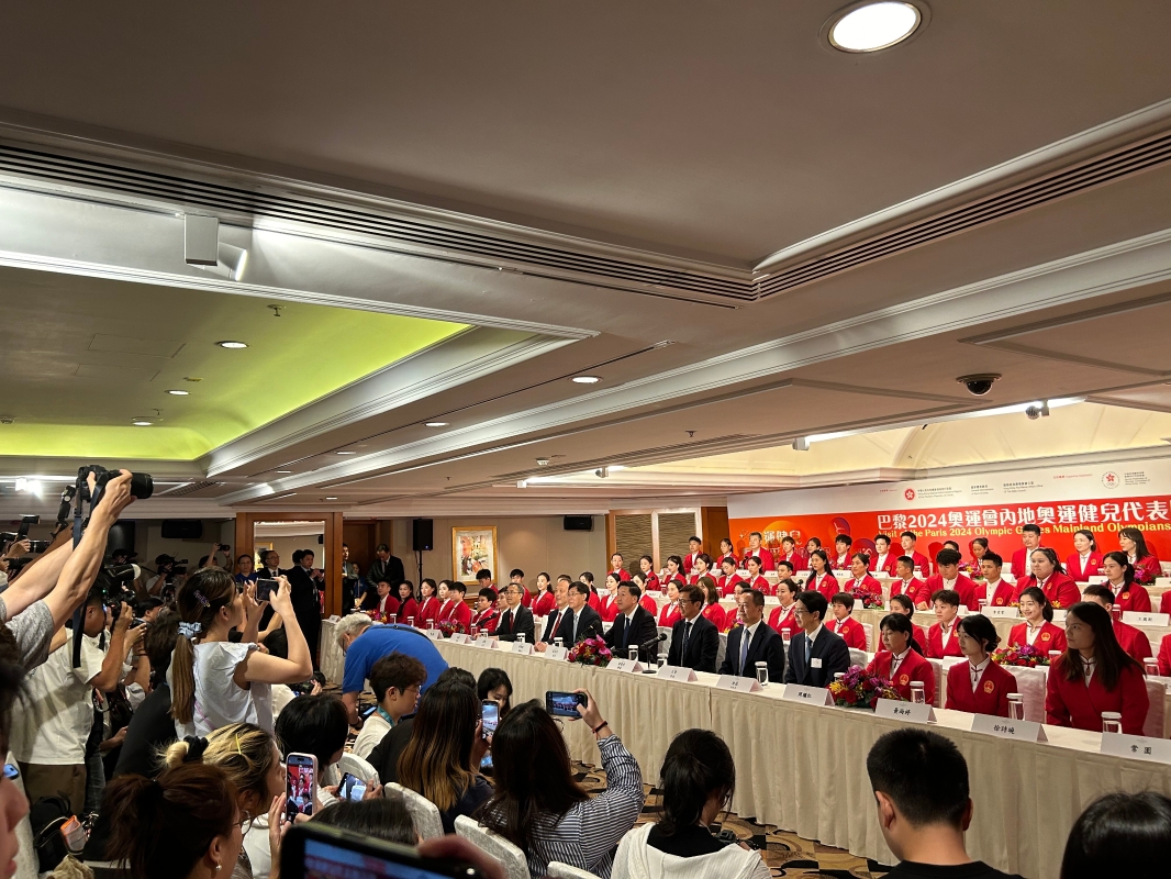 香港中通社記者 謝光磊 下午下午4時許,高志丹率領包括中國隊首位“六金王”乒乓球運動員馬龍、17歲“三金王”跳水運動員全紅嬋、“奧運飛魚”打破100米自由泳世界紀錄的潘展樂等65名運動員和8名教練進場,現場星光熠熠。 約15分鐘的問答時間,記者區齊刷刷舉手提問,9位“幸運兒”被抽中,問題五花八門,普遍圍繞香港市民感興趣的話題:對香港青年有何寄語、來香港要品嘗哪些美食等。 “有熱愛就去追,不要害怕失敗。”全紅嬋回答時站了起來,可愛反應逗笑大家,現場氣氛頓時活躍起來。在相關視頻下網友熱評“像極了被老師突然點名”,也有網友稱“還是那個可愛的全妹”。 曾來香港參加過游泳世界杯的運動員張雨霏稱自己對香港還算熟悉,喜歡香港早點,她舉例時更用粵語說“蝦餃、叉燒包”,誠意滿滿。 此前頻頻因耿直採訪登上熱搜的潘展樂,在重提要當小朋友榜樣時認真答到:“要不怕苦、不怕累、為國爭光。我打算先把自己訓練好,等自己再成熟一點後才成為別人的榜樣。” 此次是馬龍第四次參加訪港活動,他說,感受到特區政府和市民對代表團的熱烈歡迎,讓他十分感動,希望這次有更多機會跟香港青年交流,“我想這一定會是職業生涯中特別的回憶。” 代表團中還有今年9月將在香港教育大學讀博士的花樣游泳金牌運動員王柳懿、王芊懿。王柳懿談到她對香港的印象時說,香港是個非常國際化的城市,擁有很好的教育環境和資源。她們選讀體育教育及運動科學相關專業,希望提升自身專業知識,推動體育科學的進步,為中國花游未來發展貢獻力量。 散場之後,一眾運動員魚貫而出,在半路遇到擔當義工的小朋友們,更停下腳步,熱情與他們合影留念。 台上是叱吒四方的戰士,台下是善意溫暖的鄰家青年。
