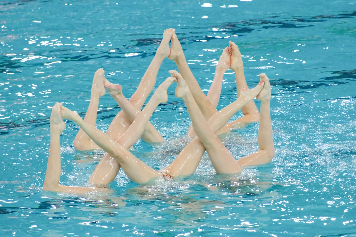 中國花樣游泳隊示範花樣游泳集體項目表演