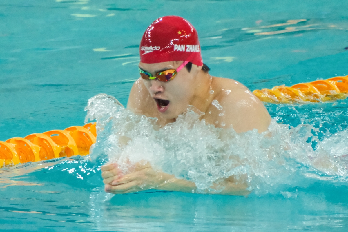 中國男子游泳隊隊員潘展樂示範蛙泳
