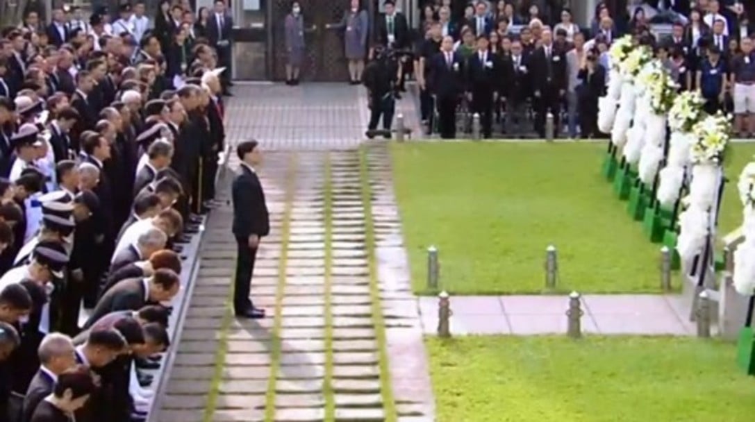 (圖源:政府新聞處) 現場舉行升旗儀式並奏唱國歌,香港警察步槍儀仗隊鳴槍向為抗日戰爭作出貢獻的英烈致敬、全體出席者默哀。 默哀完畢,李家超帶領各界別代表行鞠躬禮致意。 9月3日是中國人民抗日戰爭暨世界反法西斯戰爭勝利79周年紀念日。為了這一勝利,中國軍民浴血奮戰14年,傷亡超3500萬。面對殘暴的侵略者,中國人民奮起抵抗、絕不妥協,最終迎來曙光。(完) 【編輯:劉春】