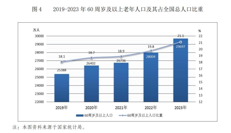 2023年民政事業發展統計公報 截圖 根據上述官方統計數據,全國60周歲及以上老年人占比現已超過20%。 此前,國家衛健委老齡司司長王海東曾在2022年9月20日的新聞發佈會上指出,中國老齡化呈現出數量多、速度快、差異大、任務重的形勢和特點。 王海東當時表示,截至2021年底,全國60歲及以上老年人口達2.67億,佔總人口的18.9%;65歲及以上老年人口達2億以上,佔總人口的14.2%。據測算,預計“十四五”時期,60歲及以上老年人口總量將突破3億,占比將超過20%,進入中度老齡化階段。2035年左右,60歲及以上老年人口將突破4億,在總人口中的占比將超過30%,進入重度老齡化階段。 另據媒體報道,2023年11月17日,國家發改委社會發展司副司長、一級巡視員郝福慶在2023中國國際老齡產業高峰論壇上表示,2022年中國60歲以上的老年人2.8億,占比達到了19.8%,2023年會超過20%,這意味著進入到中度老齡化階段,未來還會加速發展,到本世紀中葉可能會有5億老年人,未來銀髮經濟具有廣闊的市場空間。 【編輯:馬華】