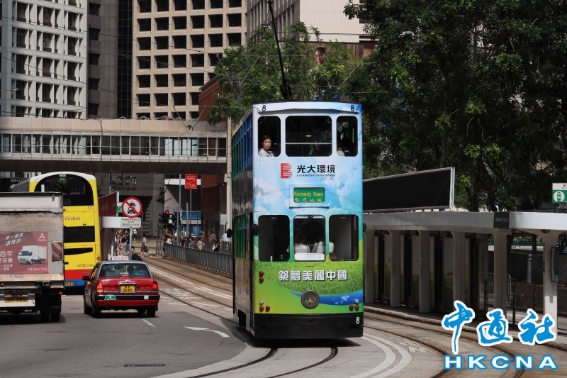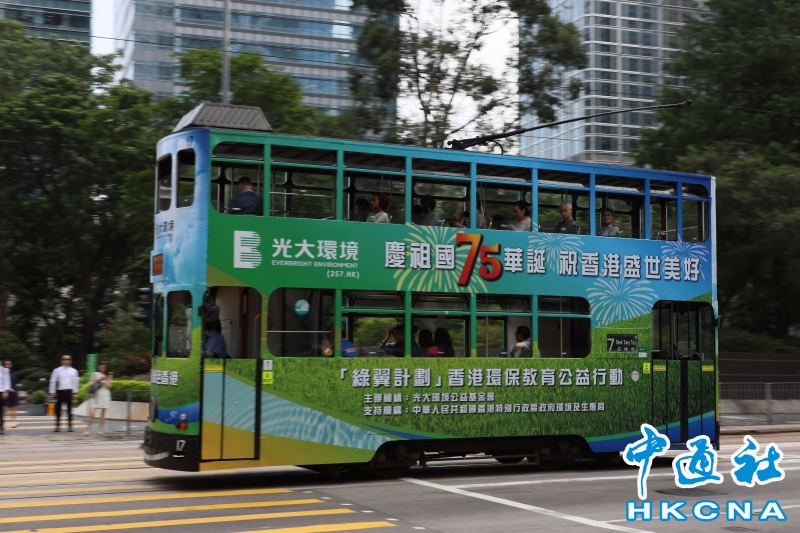 •     國慶節前夕,光大環境公益基金會“慶祖國75華誕 祝香港盛事美好”電車穿梭港島賀國慶。 香港中通社圖片