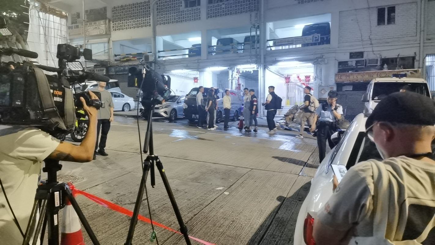 香港中通社記者 譚暢攝 警方在晚上9時許獲一名女子報案,指自己被丈夫襲擊受傷。警員接報到場,發現疑犯手持利刀及剪刀。據了解,警方多次口頭警告無果後,有衝鋒隊警員開槍擊中疑犯,將其制服。疑犯由救護車律敦治醫院搶救,於晚上10時39分證實不治。(完) 【編輯:陳卓儀】