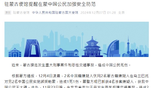 圖片來源:中國駐日本大使館官網 一、樹牢安全意識 留意當地安全風險,遠離遊行、示威、集會人群。遵守當地法律法規,尊重當地風俗習慣。拍照、錄像、使用無人機等須符合當地規定。如遇糾紛,理性表達訴求,通過協商或法律途徑維護自身合法權益。緊急情況請及時向日本警方報案,并聯繫駐日本使領館求助。 二、做好行前準備 日本自然災害多發,出發前請提前了解目的地風險形勢、氣象預警和防災信息,選擇正規旅行社和有資質包車公司,積極考慮購買人身意外保險。如遇災害,請遵從當地指引避難,切勿擅自行動。 三、謹慎選擇項目 參與登山、涉水等活動前請關注天氣預報和風險提示。在天氣惡劣、飲酒服藥後或在身體狀況欠佳時不貿然參與。謹慎赴“獵奇”景點打卡,避免前往未開發、缺乏安全保障區域。 四、注意交通安全 日本機動車靠左行駛、車速較快,請注意遵守交通規則,熟悉交通標識,切勿闖紅燈或橫穿馬路。如選擇自駕出行,請預先了解申辦合法駕照流程,辦妥“自駕遊”各項手續。旅途中發現司機疲勞駕駛、車速過快等情況,及時主動提醒。 五、妥善保管財物 請提高警惕,注意保管好個人證件和財物,備好護照信息頁、簽證頁、入境章頁等複印件,留存親屬、使領館等緊急聯繫方式,以備不時之需。如不幸遭遇盜搶,第一時間向警方報警。 六、謹防電信詐騙 請廣大同胞提高防範意識,對自稱駐外使領館、國內公檢法機關、航空公司等來電加強甄別,不要向陌生人透露個人信息,更不要輕易轉賬匯款。如有疑問,可通過電話、郵箱等聯繫駐日使領館和國內相關機構進一步核實。 日本報警電話:110、03-3501-0110(提供中文服務),海外可撥打#9110 日本國民生活中心消費者服務熱線+81-3-5449-0906(工作日10時-16時,提供中文服務) 外交部全球領事保護與服務應急熱線(24小時): +86-10-12308,+86-10-65612308 駐日本大使館領事保護與協助電話:+81-3-6450-2195 駐大阪總領館領事保護與協助電話:+81-6-6445-9427 駐福岡總領館領事保護與協助電話:+81-92-753-6483 駐札幌總領館領事保護與協助電話:+81-11-513-5335 駐長崎總領館領事保護與協助電話:+81-95-849-3311 駐名古屋總領館領事保護與協助電話:+81-52-932-1036 駐新潟總領館領事保護與協助電話:+81-25-228-8888(完) 【編輯:紀東】