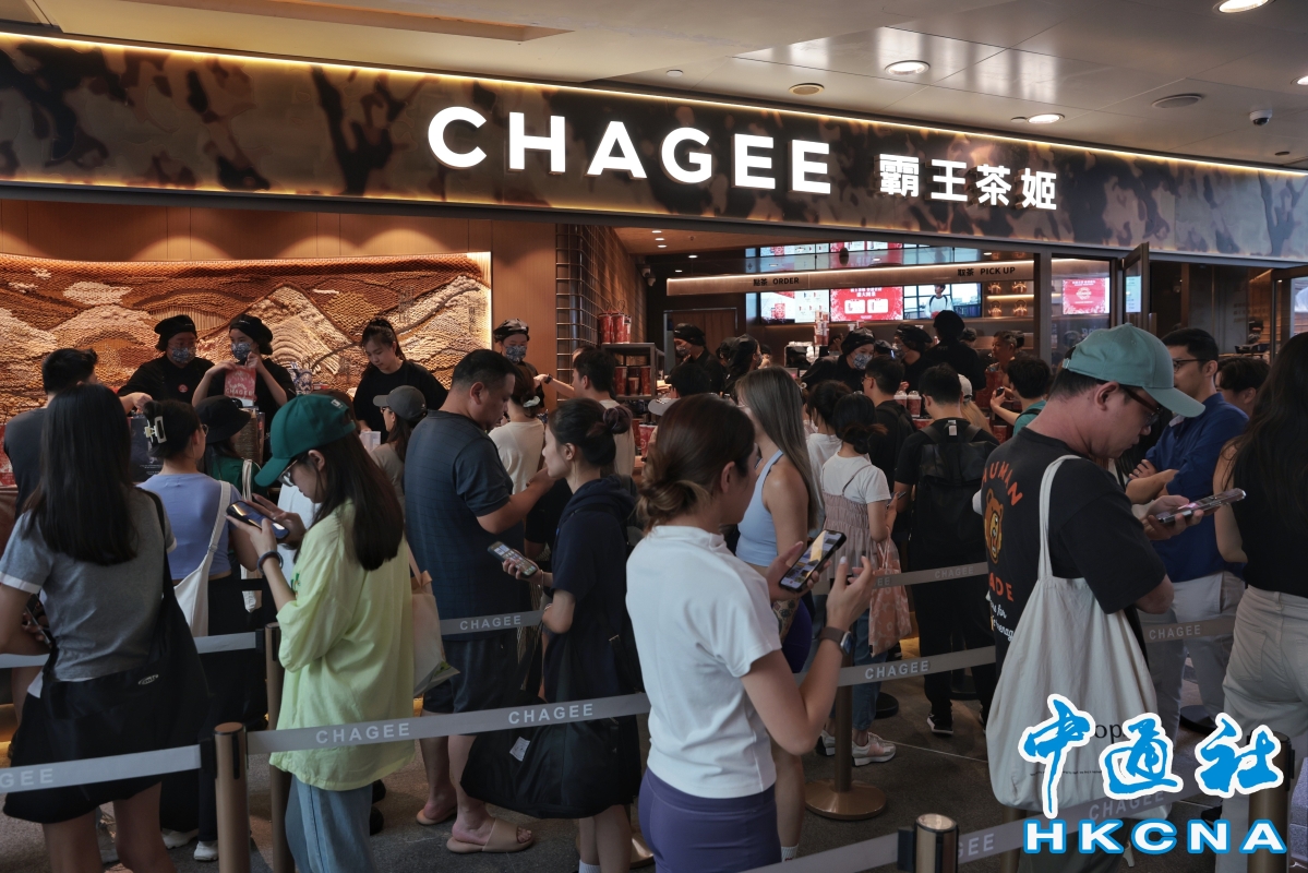 “霸王茶姬”在香港開設了首家門店,開業前三天顧客普遍需等待2到5小時才能購買飲品。(香港中通社記者 謝光磊攝)