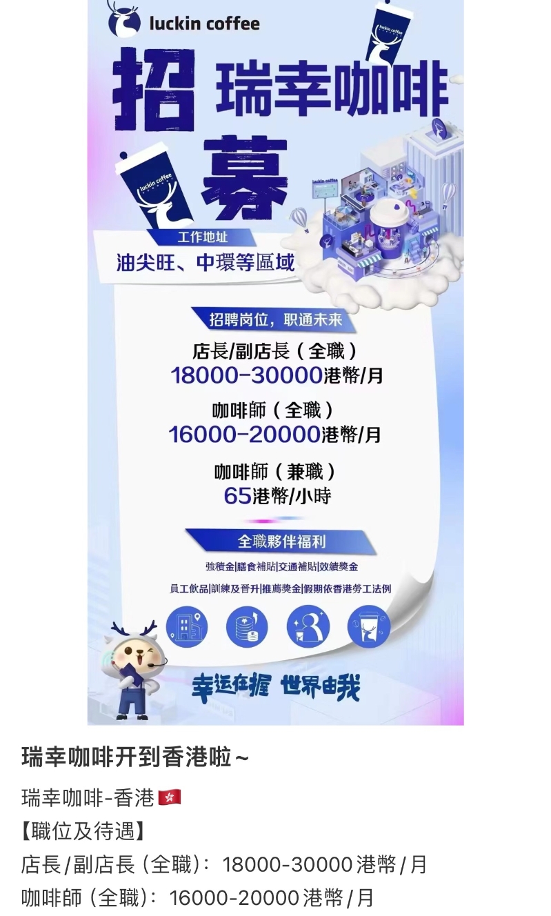 有消息稱瑞幸咖啡將在油尖旺和中環等地招聘,暗示其即將開店。(小紅書截圖) 茶飲品牌進軍香港 打造品牌影響力 隨著眾多茶飲品牌爭相布局香港市場,業內專家分析認為,這一現象主要源於內地市場競爭愈發激烈,促銷活動頻繁,促使品牌尋求新的市場機會。香港因其地理位置接近內地,交通便利,便於原材料運輸和人員支持,且語言溝通障礙較小,成為了許多品牌的首選之地。 關於這些品牌的盈利前景,有專家指出,許多進入香港市場的茶飲品牌並非單純追求短期利潤,而是希望提升品牌影響力,在香港市場紮根,吸引投資者的關注。因此,這些品牌在選擇商舖位置時,通常優先考慮最佳商圈,而不是僅關注成本,以實現更好的品牌宣傳和廣告效應。 內地餐飲分析師汪洪棟指出,儘管香港的租金和人力成本較高,但飲品的定價也相應提高,使得一些品牌仍能實現盈利,但這種商業模式在香港也面臨挑戰。相比之下,一些定價在30港元左右、並準備跳出價格戰的品牌(例如喜茶、霸王茶姬),可能更適合香港市場,而在內地頻繁關店並陷入虧損的品牌(例如奈雪的茶),可能會無暇顧及香港市場的發展。 此外,內地茶飲品牌在香港市場面臨的最大挑戰是選址。由於香港面積較小,核心商圈提供的位置有限,市場容量也受到制約。隨著越來越多的茶飲和咖啡品牌湧入香港,競爭不可避免。旺角地區就聚集了眾多茶飲品牌,市場競爭愈發激烈。 專家表示,香港的商業中心高度集中,茶飲品牌無法在各個區域開設多家門店,且並不是有資金就能找到理想的店面。隨著內地茶飲品牌的接連進入,雖然它們會進行各種促銷活動,但由於本地缺乏規模較大的茶飲品牌,最終可能導致內地品牌之間的相互競爭,香港市場有可能成為另一個內地城市的縮影。(完) 【編輯:黃璇】