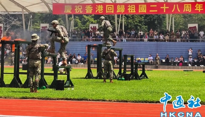 香港新聞網10月6日電 中國人民解放軍駐香港部隊10月5日舉辦“十一”軍營開放活動,數萬名香港市民走進昂船洲、石崗和新圍軍營,與駐軍官兵一起,共同慶祝中華人民共和國成立75周年。 上午十時許,昂船洲軍營組織隆重的升國旗儀式,五星紅旗冉冉升起、迎風飄揚,前來參觀的香港市民和駐軍官兵滿懷喜悅與自豪,向祖國表達最真摯的祝福。升旗儀式結束後,軍樂隊列、槍械儀仗、刺殺操等課目相繼展開,駐軍官兵訓練有素的軍事技能和朝氣蓬勃的軍人形象贏得現場觀眾熱烈掌聲。