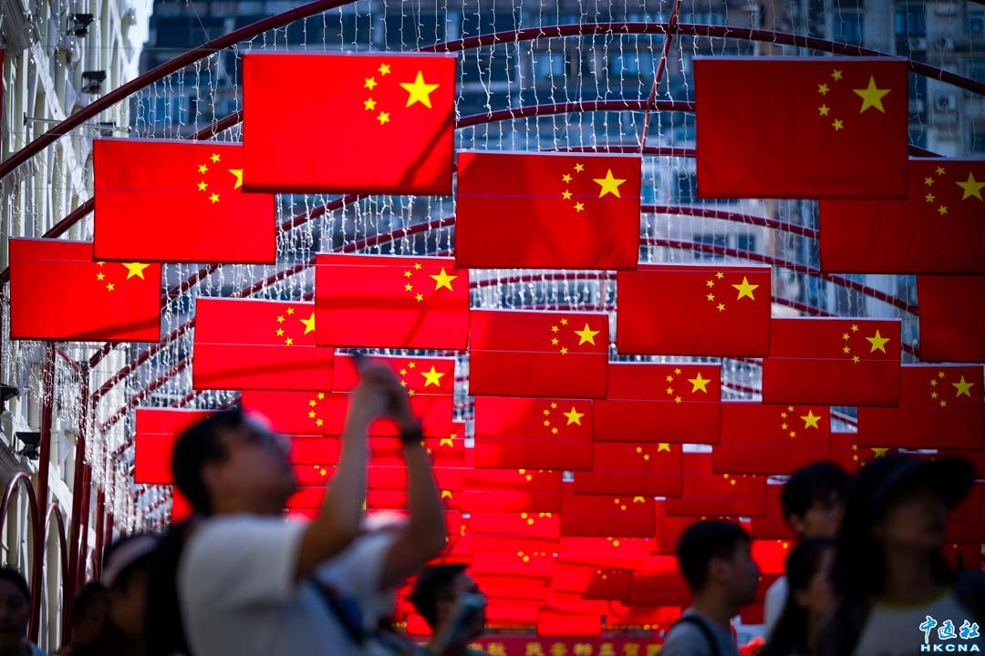 10月1日早上,香港特區政府於金紫荊廣場舉行隆重的升旗儀式,熱烈慶祝中華人民共和國成立75周年。(香港中通社記者 謝光磊攝)