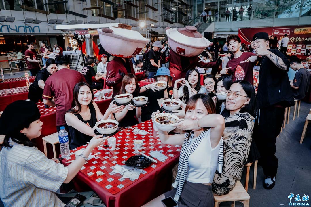 10月4日,香港一粥面與李錦記在樂富廣場舉辦“火力全開! 鮑魚煲仔飯千人挑戰! ”活動,邀請1000名參加者以“馬拉松式”品嘗煲仔飯,為本土美食創下首個世界紀錄。 整個活動分為6個場次,參加者即場品嘗“鮑魚臘腸滑雞煲仔飯”。(香港中通社記者 曹文毓攝)