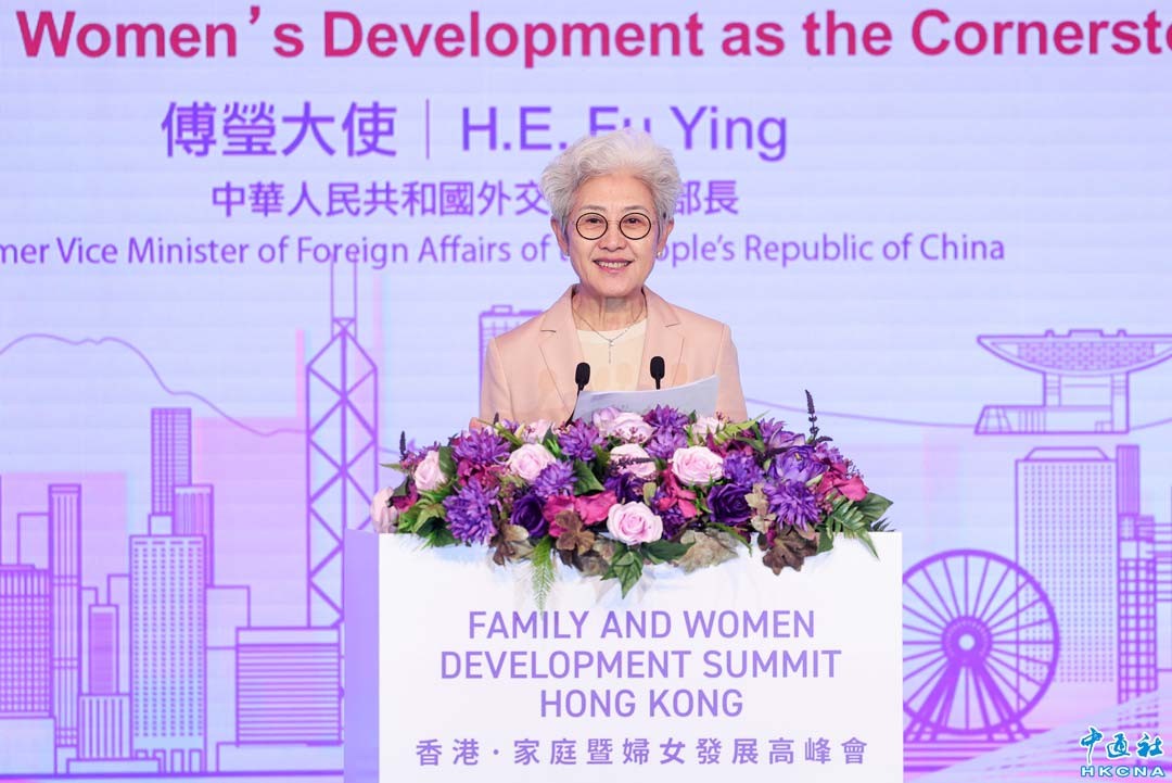 10月9日,首屆“香港·家庭暨婦女發展高峰會”在香港會展中心開幕。高峰會以“發揮巾幗力量、傳承良好家風”為主題,邀請來自不同地區主管婦女或家庭政策的主要領導、不同界別的成功女性、來自不同背景的家庭和非政府機構代表等擔任演講嘉賓,討論並分享家庭和婦女發展在建設和諧社會及對推動國家發展的重要性。圖為中華人民共和國外交部前副部長傅瑩進行主題演講。(香港中通社記者 曹文毓攝)