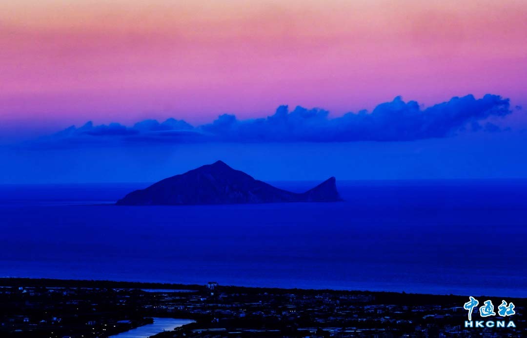 從台灣宜蘭蘭崁山眺望龜山島,看見一隻默默守在太平洋的浮龜,及清晰可見蜿蜒的冬山河,與宜蘭的母河蘭陽平原,在山、海、河、平原就像四個田園交響樂章,譜出扣人心弦,感性的動人樂章。“蘭崁山”是令人敬畏的山,這條上山的道路叫“安平坑林道”,又稱“力霸產業道路”,山頂早期是開採石灰石礦場的地方,為了方便礦區運輸而興建的產業道路,早年有管制措施,是砂石車進出專用之路,並不對外開放,故外界足跡罕至,如今這裡開放且逐漸褪去神秘面紗,是眺望龜山島景色的地方,吸引許多登山民眾,是攝影迷、賞夜景看龜山島絕佳的景點。 香港中通社圖片