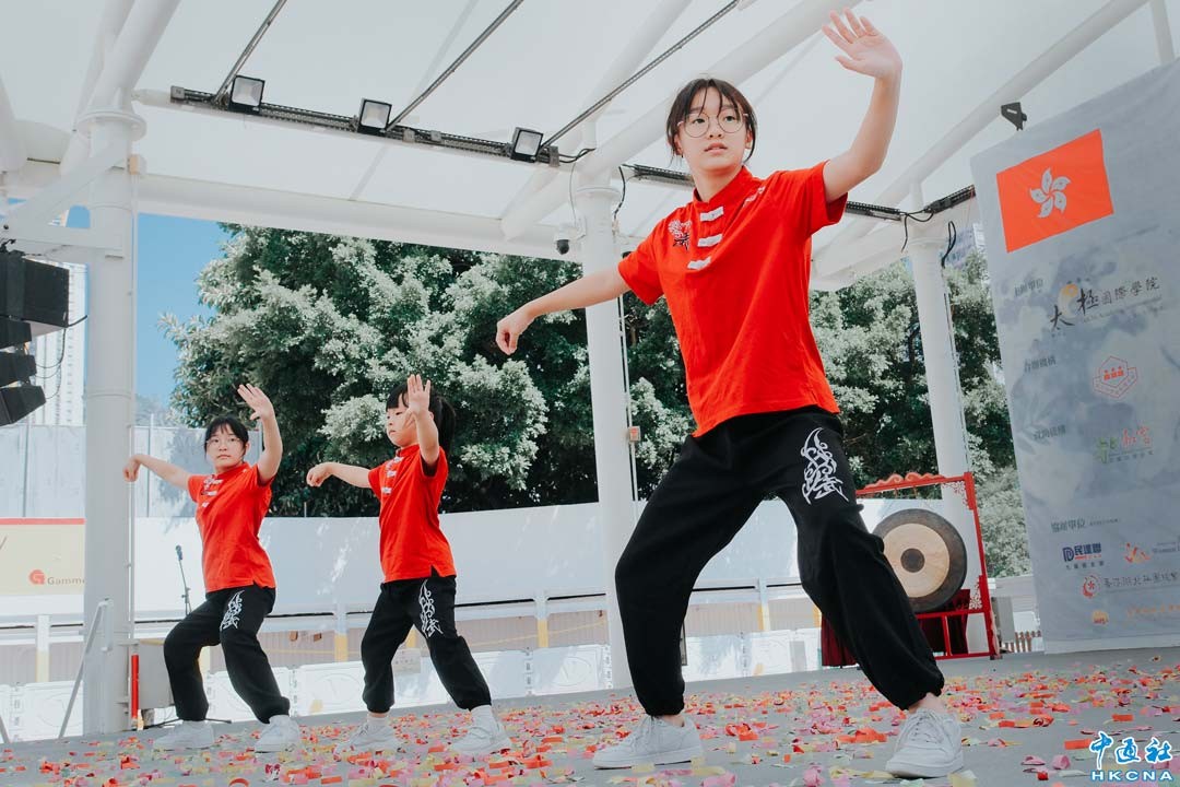 10月12日,香港太極國際學院在黃大仙廣場舉辦國際太極日,並慶祝中華人民共和國成立75周年。今年活動主題是“凝聚太極力量,融合國際最強”。(香港中通社記者 許其皓攝)