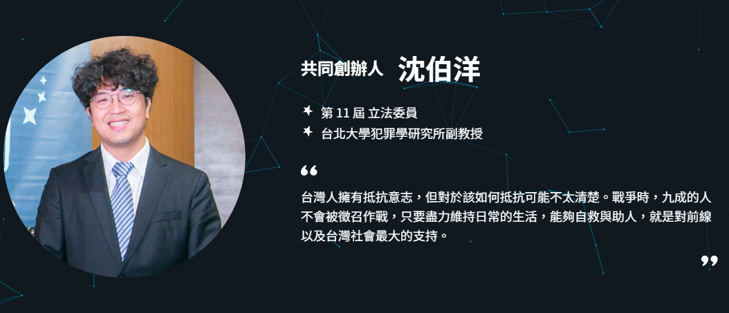 “黑熊學院”為沈伯洋與友人於2021年創立,沈伯洋聲稱“黑熊學院”為民間“全民防衛組織”,目標是讓台灣平民具備民防基本知識與技能,其理念是“戰爭將波及台灣每一個人”,全台灣社會都要做好戰爭的準備。 翻看“黑熊學院”的官網,主頁直接寫明:“建立四大民防課程領域,提升台灣社會面對戰爭與災害的韌性,培養自我保護、守護他人的能力。” 所謂四大課程為:戰爭樣貌、資訊作戰、衛生與基礎救護、避難準備。網站顯示,學院平均每天有1.2場活動,觸及人數達320多萬人。網頁所示,報名這些課程起步價1000多新台幣,課程甚至還有“了解中國”的主題,聲稱可以“了解中國式制度與思維如何運作,以及如何構成我們的風險與威脅。” 起先,“黑熊學院”只有5名成員,沈伯洋漸憑其所謂“認知作戰”研究將“黑熊學院”向外推銷,獲得自新加坡返台的聯電前董事長曹興誠“認可”。曹興誠大肆鼓吹“以武拒統”、“全民皆兵”,與沈伯洋一拍即合,並稱讚助6億新台幣,用於訓練300萬“黑熊勇士”。 值得一提的是,曹興誠曾擔任董事長的聯華電子是僅次於台積電的世界第二大晶圓代工廠,早在二十多年前就前往大陸設廠生產,近年來其立場大轉變,多次公開抨擊“九二共識”,高調支持“兩國論”。