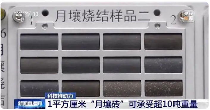 截圖自中央電視台。 綜合媒體報道,近日“月壤磚”樣品要搭乘“天舟八號”貨運飛船前往中國空間站。在完成太空實驗後,為未來拼裝建造月球基地提供支持。 據了解,這些磚塊由華中科技大學的數字建造國家技術創新中心開發。是未來可能用於月球蓋房子的建築材料,採用一種真空燒結的方式,對模擬月壤進行燒結成型。這些磚塊採用榫卯結構,可以互相嵌合,不需要使用釘子或膠水,非常符合太空環境下便捷裝配的要求。