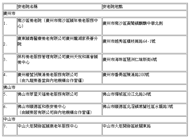 香港政府資助綜援長者廣東院舍養老再添新方案香港新聞網10月22日電 香港特區政府社會福利署今日宣布,“廣東院舍照顧服務計劃”(計劃)由11月1日起新增7間安老院為認可服務機構(其中5間由內地機構營運;另外2間由香港機構與內地機構合作營運)連同原有兩間位於深圳、一間位於佛山和一間位於肇慶的安老院,參與計劃的安老院總數增至11間。 同時,香港政府新一份施政報告提出,擬資助綜合社會保障援助計劃受助長者入住廣東院舍照顧服務計劃下的安老院。勞工及福利局局長孫玉菡表示如長者昨(21日)表示,願意到大灣區參加“綜援長者入住廣東院舍試驗計劃”,每月可多獲5,000元資助,總資助額為9,400元,足以入住指定在粵院舍。在政府負擔沒有增加下,領取綜緩的單老、雙老卻可多一個選擇。