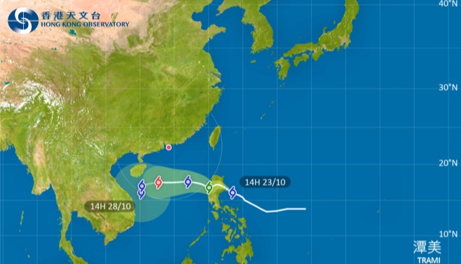 颱風潭美 | 天文台:三號強風信號至少維持至今晚10時香港新聞網10月26日電 三號強風信號,現正生效。香港天文台表示,在強烈熱帶風暴潭美與東北季候風的共同影響下,預料香港吹偏東強風,高地間中達烈風程度。而與潭美相關的外圍雨帶正移近珠江口一帶,香港有幾陣狂風驟雨。三號強風信號會至少維持至今晚(26日)10時。 海面有大浪及湧浪,市民應遠離岸邊及停止所有水上活動。 隨著潭美逐漸遠離,香港風力會在今晚至明早減弱,天文台會視乎本地風力變化,屆時考慮改發一號戒備信號。 【11:50更新】香港天文台表示,強烈熱帶風暴潭美已增強為颱風,其外圍雨帶正逐漸影響廣東沿岸。在潭美與東北季候風的共同影響下,其強風區正逐漸影響珠江口一帶。香港正漸轉吹偏東風,原先受屏蔽的地區會變得當風,香港風勢將會增強及有幾陣狂風驟雨。三號強風信號會在今日(26日)大部分時間維持。 海面有大浪及湧浪,市民應遠離岸邊及停止所有水上活動。 隨著潭美遠離,今晚至明早香港風力會逐漸減弱,屆時天文台會考慮改發一號戒備信號。 【9:30更新】香港天文台表示,會在今早(26日)10時40分改發三號強風信號。 天文台說,過去數小時,強烈熱帶風暴潭美繼續穩定向偏西方向移動,在香港以南約500多公里掠過,並稍為增強,其外圍雨帶正影響廣東沿岸。在潭美與東北季候風的共同影響下,相關的強風區會逐漸影響珠江口一帶,預料香港今日風勢將逐漸增強。而隨著今日稍後轉吹偏東風,原先受屏蔽的地區可能會變得當風。天文台會在早上10時40分改發三號強風信號。