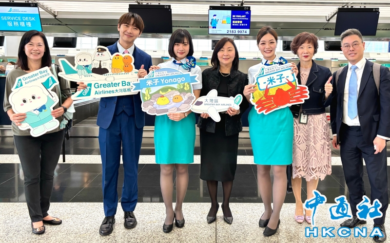 •   10月27日,大灣區航空正式開辦香港至日本鳥取縣米子市的定期航班服務,成為該公司繼東京及大阪之後第三個往來日本的定期航點。圖為大灣區航空行政總裁吳秀蘭(中)與工作人員合影。(香港中通社記者 黃璇攝) 香港中通社圖片