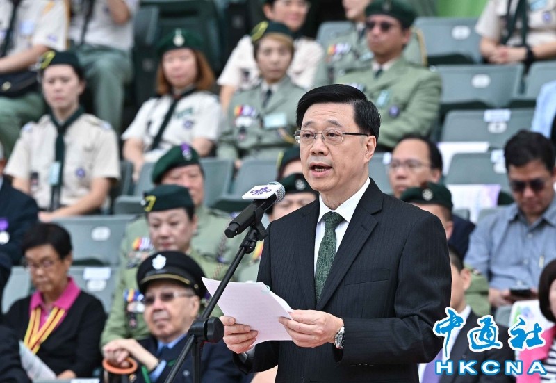 10月27日,香港特區行政長官李家超在香港大球場舉行的香港童軍大會操2024致辭。 香港中通社圖片 大會操共有逾萬名童軍出席,並在李家超的見證下進行覆誓,以履行童軍服務社會的使命。李家超指出,香港童軍總會是香港規模最大的青少年制服團體,青少年成員超過3.4萬人,充分體現社會各界的認同和支持。 李家超指,總會透過多元化訓練以及參與本地、內地和國際活動,加深青年人的家國情懷和國際視野,包括籌辦新質生產力香港青年研學團,啟發和培育青年的創新思維及領導技能,為他們建立積極正向價值觀等,工作值得肯定。
