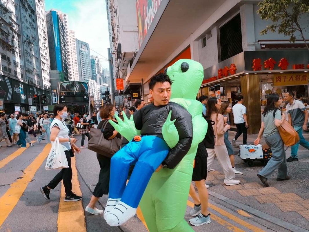 10月31日,萬聖節當天不少市民和遊客悉心打扮,招搖過市,準備狂歡。(香港中通社記者 洪少葵攝)