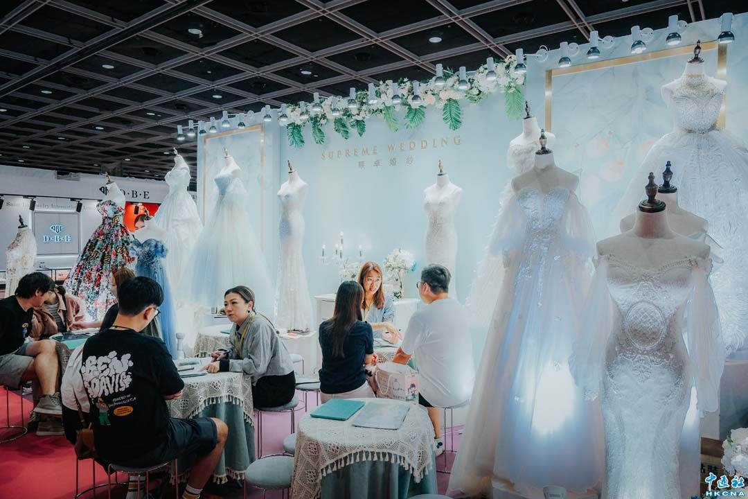 11月3日,香港大批市民到會展中心逛婚展。香港婚紗展暨結婚博覽及香港婚宴博覽11月1至3日在香港會展中心舉行,是屆展覽除了擁有各式各樣的婚嫁產品及服務外,更齊集多間餅咭禮券參展商,為準新人提供應有盡有的驚喜及優惠。(香港中通社記者 許其皓攝)