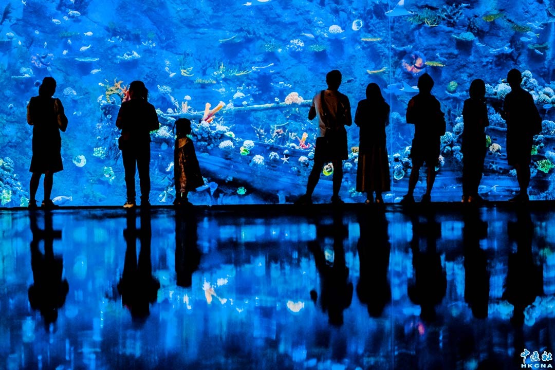 深圳小梅沙海洋世界10月1日起試運營,佔地面積6.02萬平方米,建築面積13.25萬平方米,水體量共計4萬立方米。小梅沙海洋世界以“探索海洋生命、感受海洋奇幻、科普海洋知識”為主題,將傳統生物展示和現代高科技多媒體互動技術相結合,突出科技感、娛樂性、互動性,是一個集海洋生物展示、科普教育、親子陪伴、體驗互動為一體的現代高科技海洋文化體驗場館。(香港中通社記者 許其皓攝)