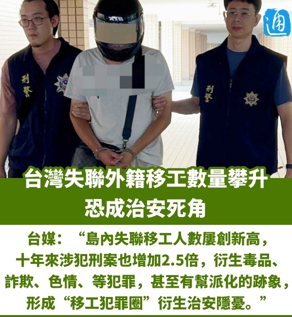 香港新聞網11月13日電 日前,有台媒關注到,台灣失聯外籍移工不斷攀升,甚至形成“移工犯罪圈”,由於外籍移工在台犯罪後難以追捕,逐漸成為島內治安死角。