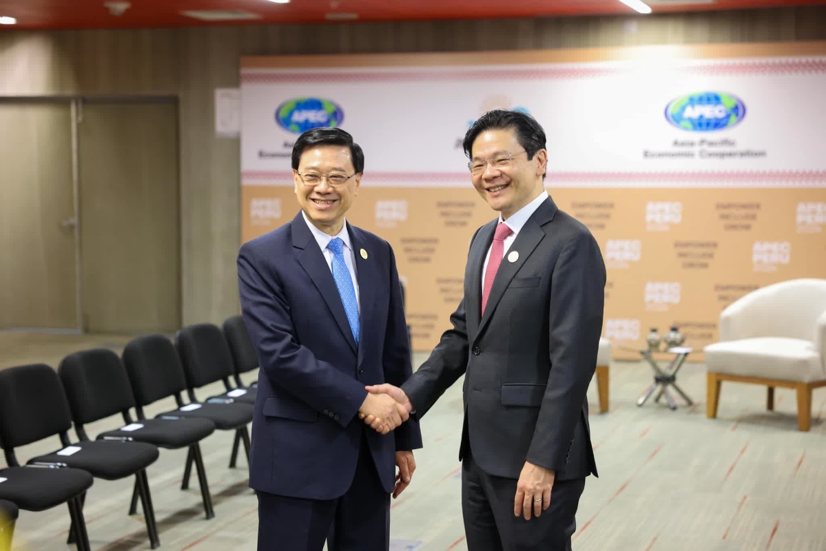 香港新聞網11月16日電 香港特區行政長官李家超,今日(16日)繼續在秘魯利馬展開訪問行程。李家超今日(16日)在社交平台發文表示,APEC會議期間,很高興與新加坡總理黃循財進行會面。他首先祝賀黃循財於今年5月就任新加坡總理,並感謝新加坡一直表示支持香港申請加入《區域全面經濟夥伴關係協定》(RCEP)。