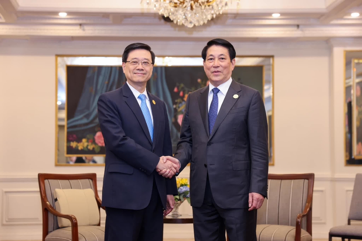 李家超與越南國家主席梁強會面。李家超FB圖片 李家超提到,很高興於APEC會議期間與越南國家主席梁強會面,祝賀他於今年10月就任越南國家主席。 香港與越南為重要經濟夥伴。越南乃香港第7大貿易夥伴,亦於東盟貿易夥伴排名第2。香港同時亦是越南過去累積第5大海外投資者。香港非常重視與越南的雙邊關係,他亦期盼香港和越南的經濟關係邁向高峰。