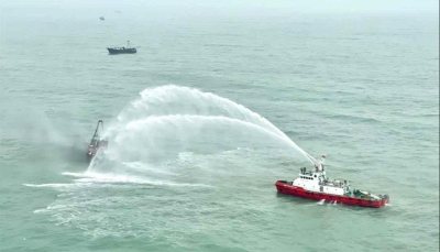 今晨(17日)5時許,香港警方接獲報案,指南丫島對開海面有一艘運油輪與一艘漁船碰撞,其後漁船沉沒,至少6人獲救受傷送院,仍有1人失蹤。 消息稱,當時漁船與運油輪相撞,漁船入水沉沒,約80歲漁船船長懷疑墮海失蹤;船上6名男子則趕至運油輪脫險,他們手腳擦傷,被送往香港仔滅火輪基地,再由救護車送往瑪麗醫院治理。救護員為他們包上錫紙保溫,有船員能自行步出救護車。 救援人員在中區滅火輪消防局集合,前往南丫島對開海面搜救失蹤船長。(完) 【編輯:劉春】