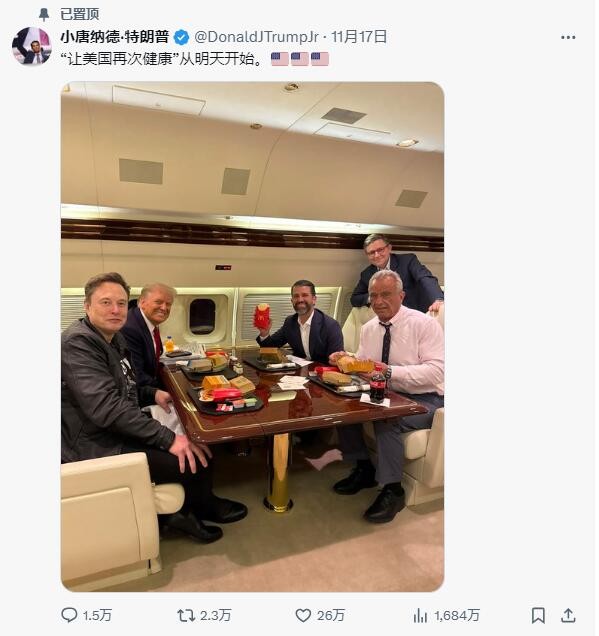 “讓美國再次健康”明天開始?特朗普和衛生部長人選大“炫”快餐分享到: