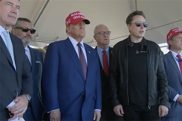 美國當選總統特朗普(中間,頭戴紅色棒球帽)。圖片來源:央視新聞 據央視新聞報道,SpaceX并沒有在此次試飛中嘗試“星艦”助推器的著陸回收。助推器落入墨西哥灣。 值得一提的是,當地時間11月19日,美國當選總統特朗普當日前往得克薩斯州,出席觀看了“星艦”的第六次試飛。 此前,美國聯邦航空管理局已在得克薩斯州布朗斯維爾上空發布“貴賓行動飛行臨時限制”措施。媒體報道稱,這是重要人士高調訪問之前常見的做法。此外,特朗普位於佛羅里達州棕櫚灘的私人住所上空的飛行限制也將在同一時段暫時解除。(完) 【編輯:俞丹鳳】